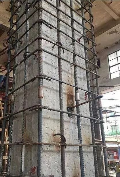 對(duì)鋼筋混凝土柱外包型鋼、扁鋼焊成構(gòu)架并灌注結(jié)構(gòu)膠粘劑,以達(dá)到整體受力,共同工作的加固方法。